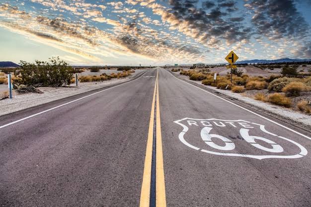 - Route 66. É a estrada mais famosa dos EUA, a primeira rodovia pavimentada, inaugurada em 1926.Ela ia de Chicago até Los Angeles, sendo símbolo da cultura “road trip” americana. Hoje, algumas cidades mantêm a nostalgia da época, com placas vintage, postos de gasolina antigos.